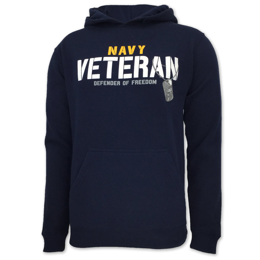 Show your pride with the Navy Veteran Defender Hoodie, an exclusive design from AFG. This comfortable sweatshirt features bold screen prints of Navy Veteran and Defender of Freedom”, honoring your service with style. Complete with a front pouch pocket and adjustable drawstring hood, this hoodie is both practical and patriotic.