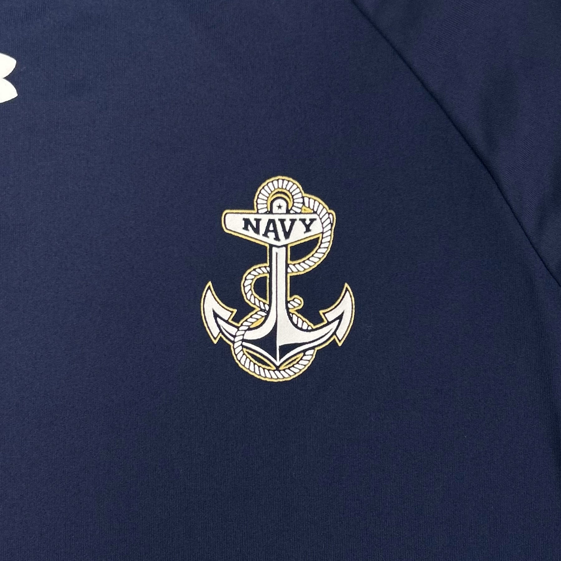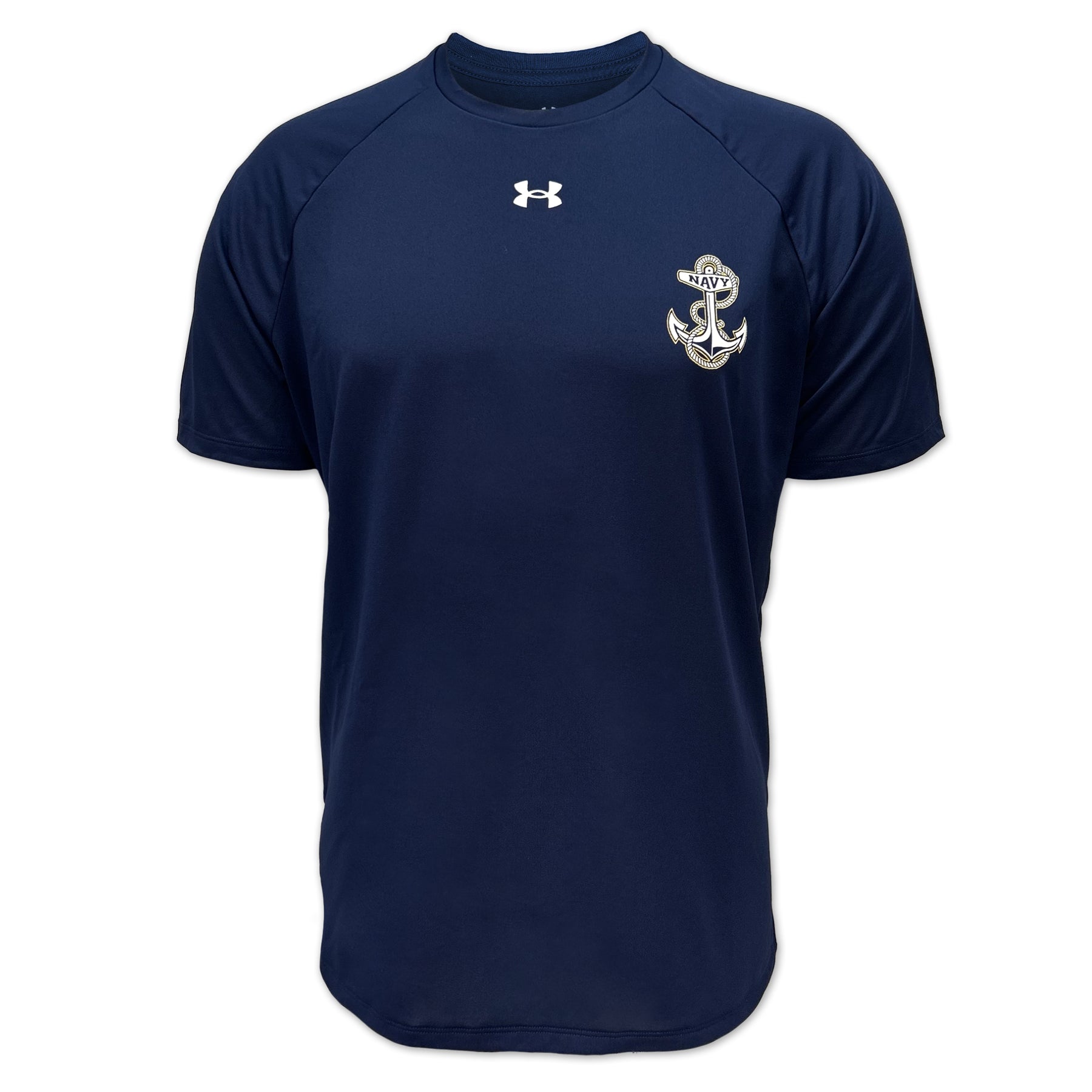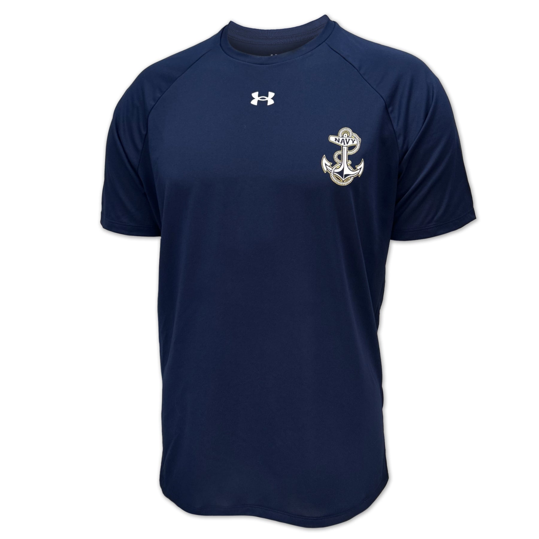 Stay cool and comfortable on duty or off with our Navy Under Armour Left Chest Anchor Tech T-Shirt. Crafted with Under Armour's signature moisture-wicking technology, this shirt ensures you stay dry and focused throughout the day. Featuring the iconic Navy Anchor on the left chest, it's the perfect blend of performance and pride for any Navy enthusiast!