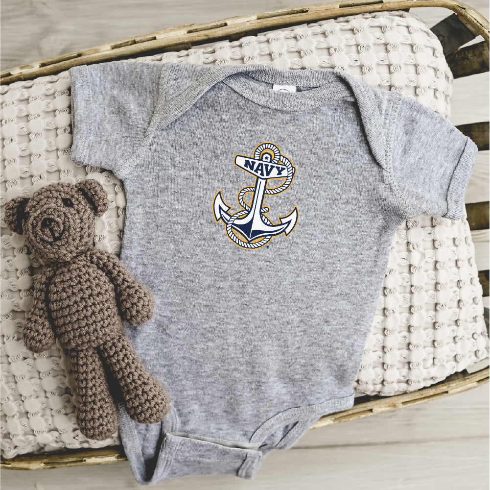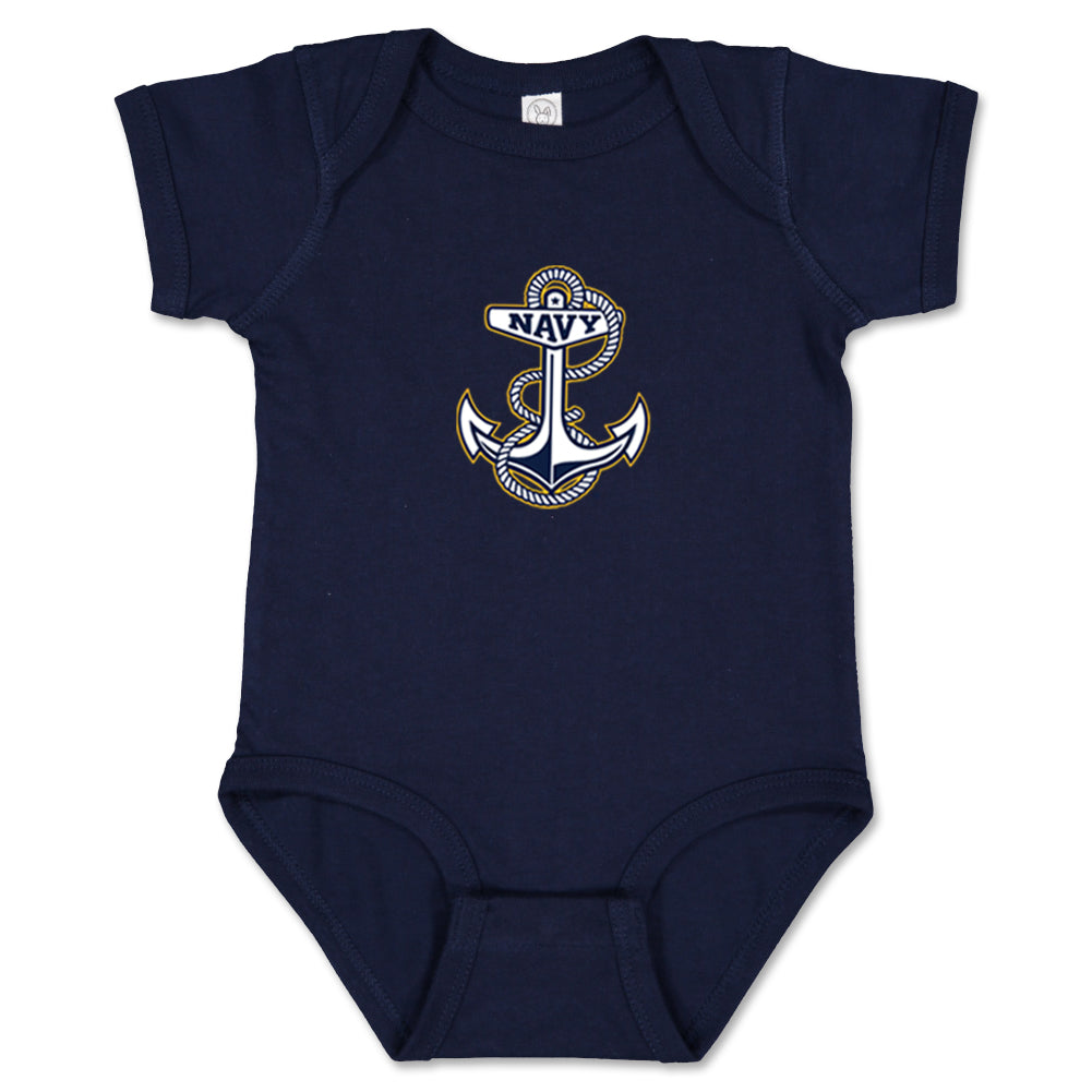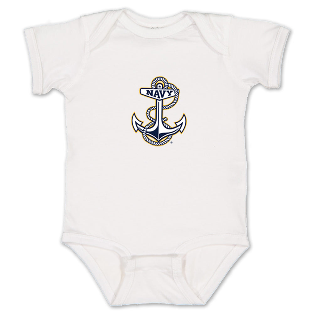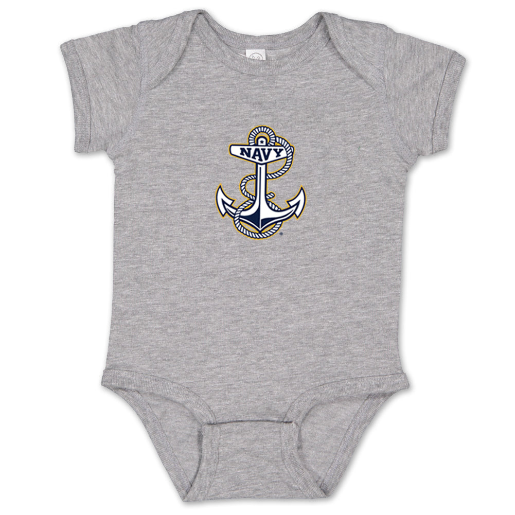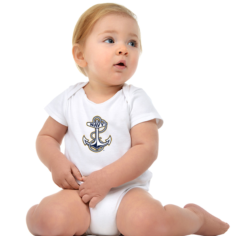 Start your little one's Navy pride early with the Infant Navy Anchor Logo Romper!