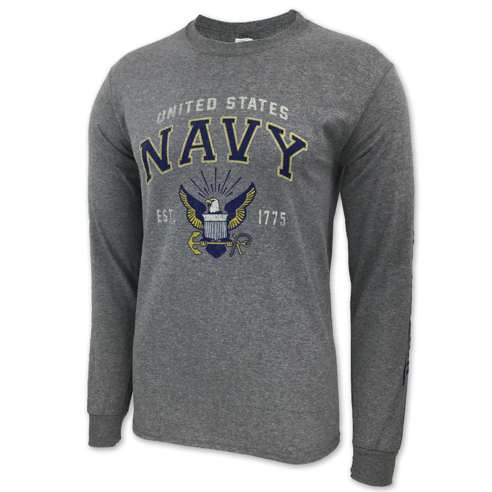 The Navy Eagle EST. 1775 long sleeve T-shirt in Grey is the perfect faded Navy T-shirt to show off your Navy Pride!