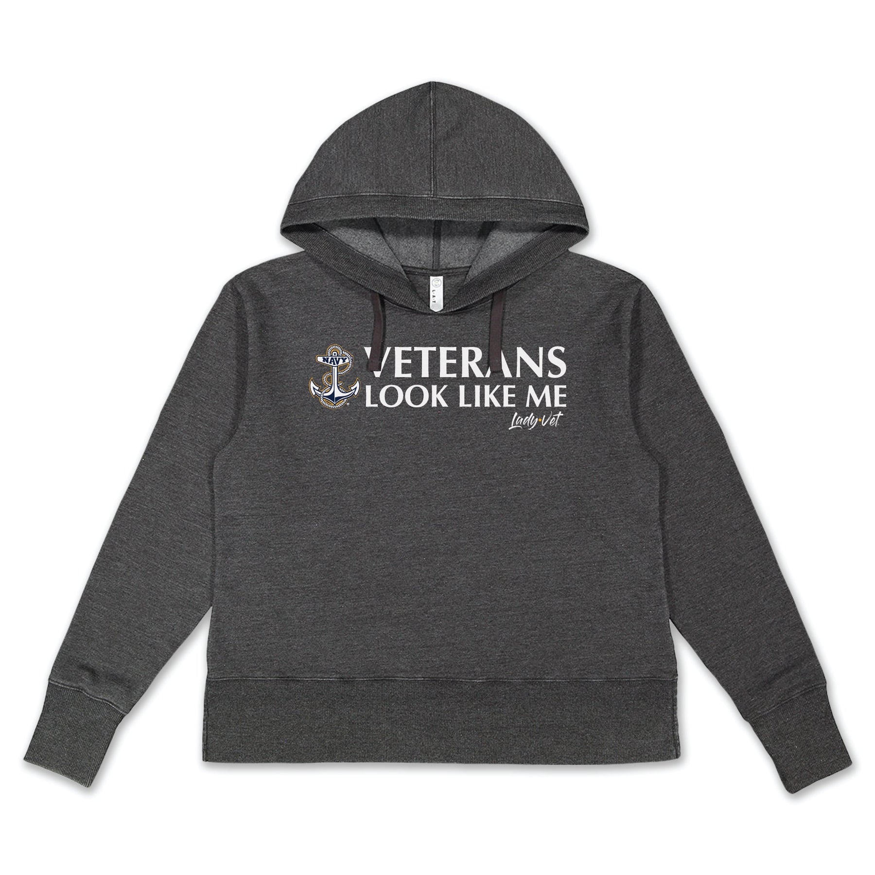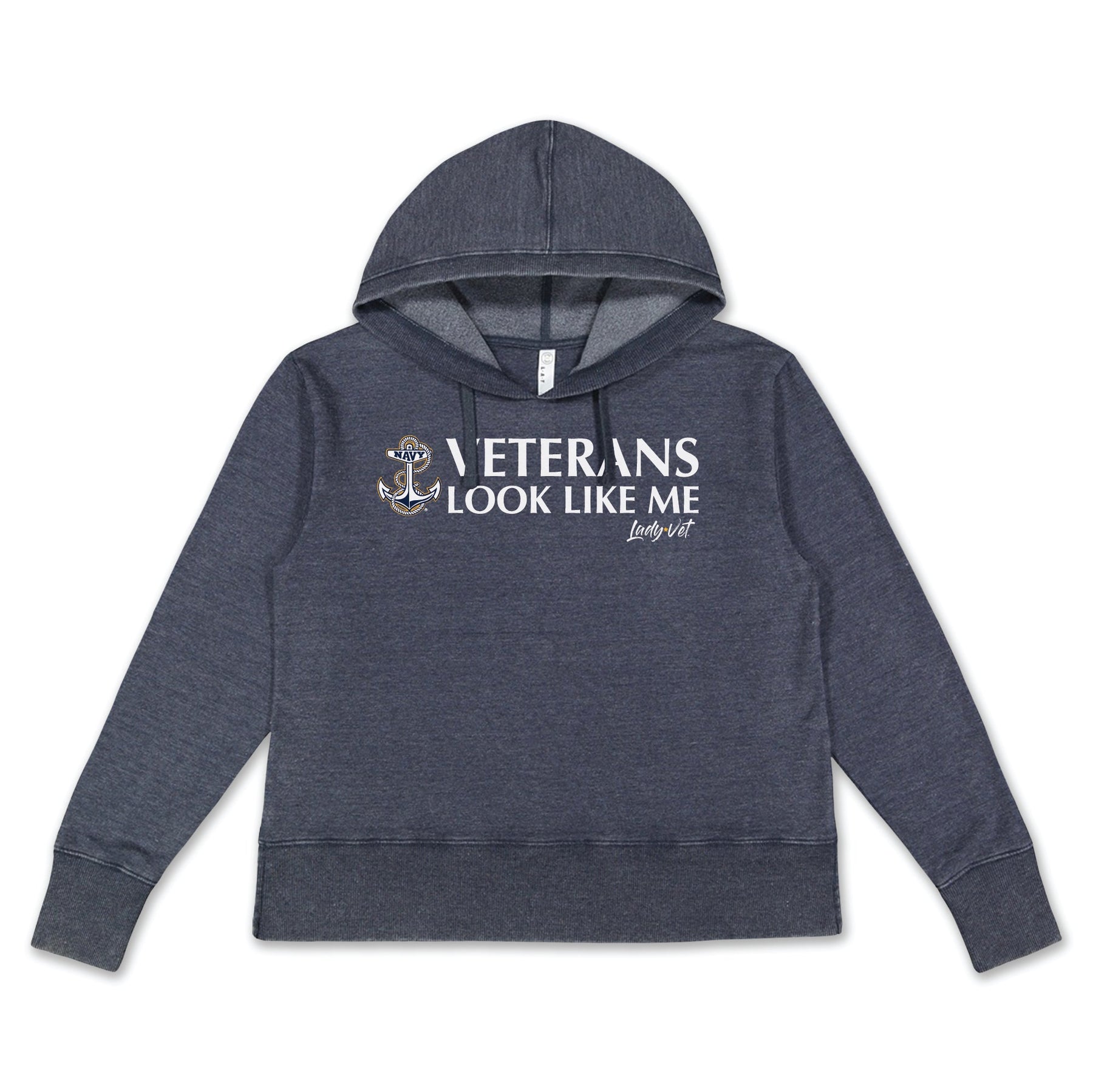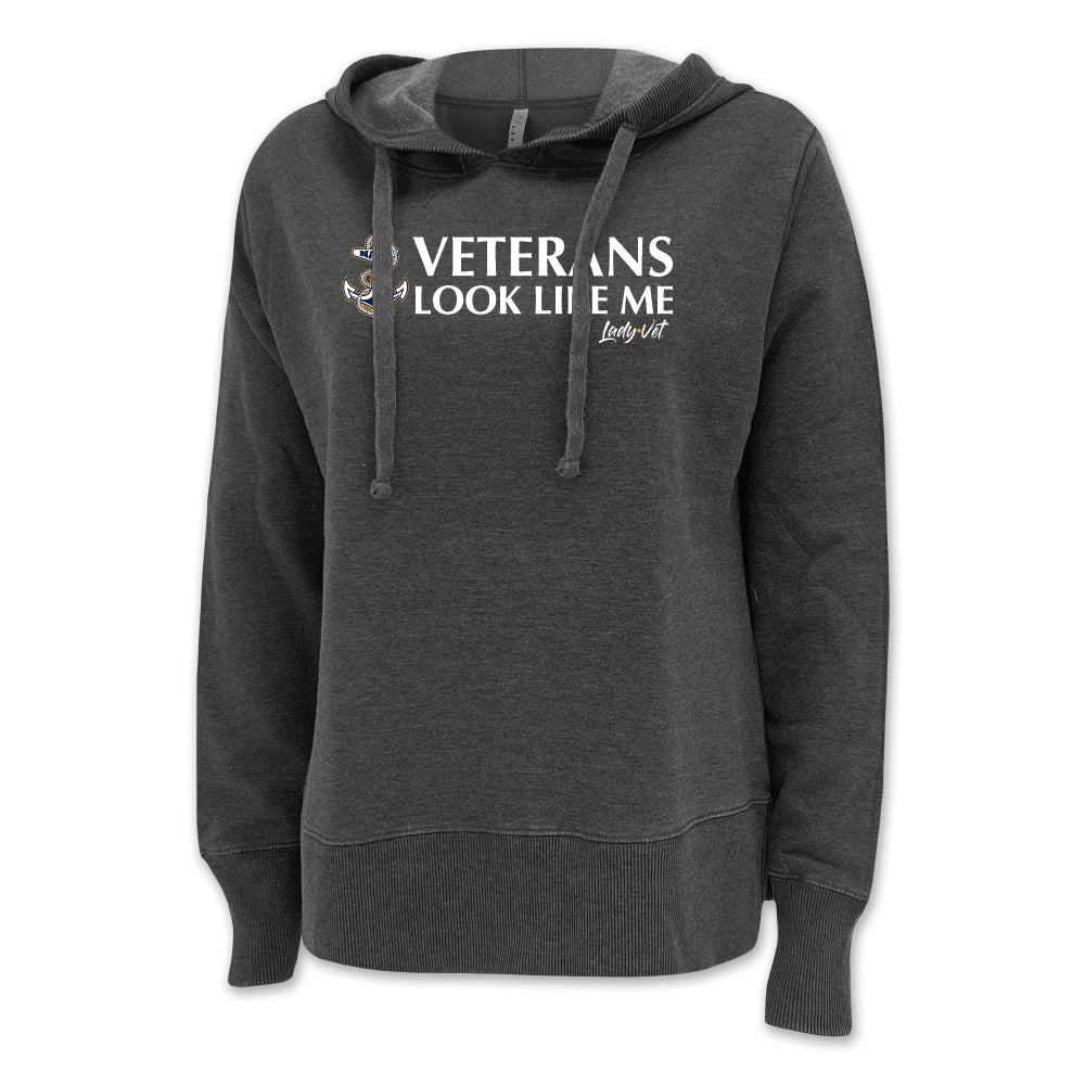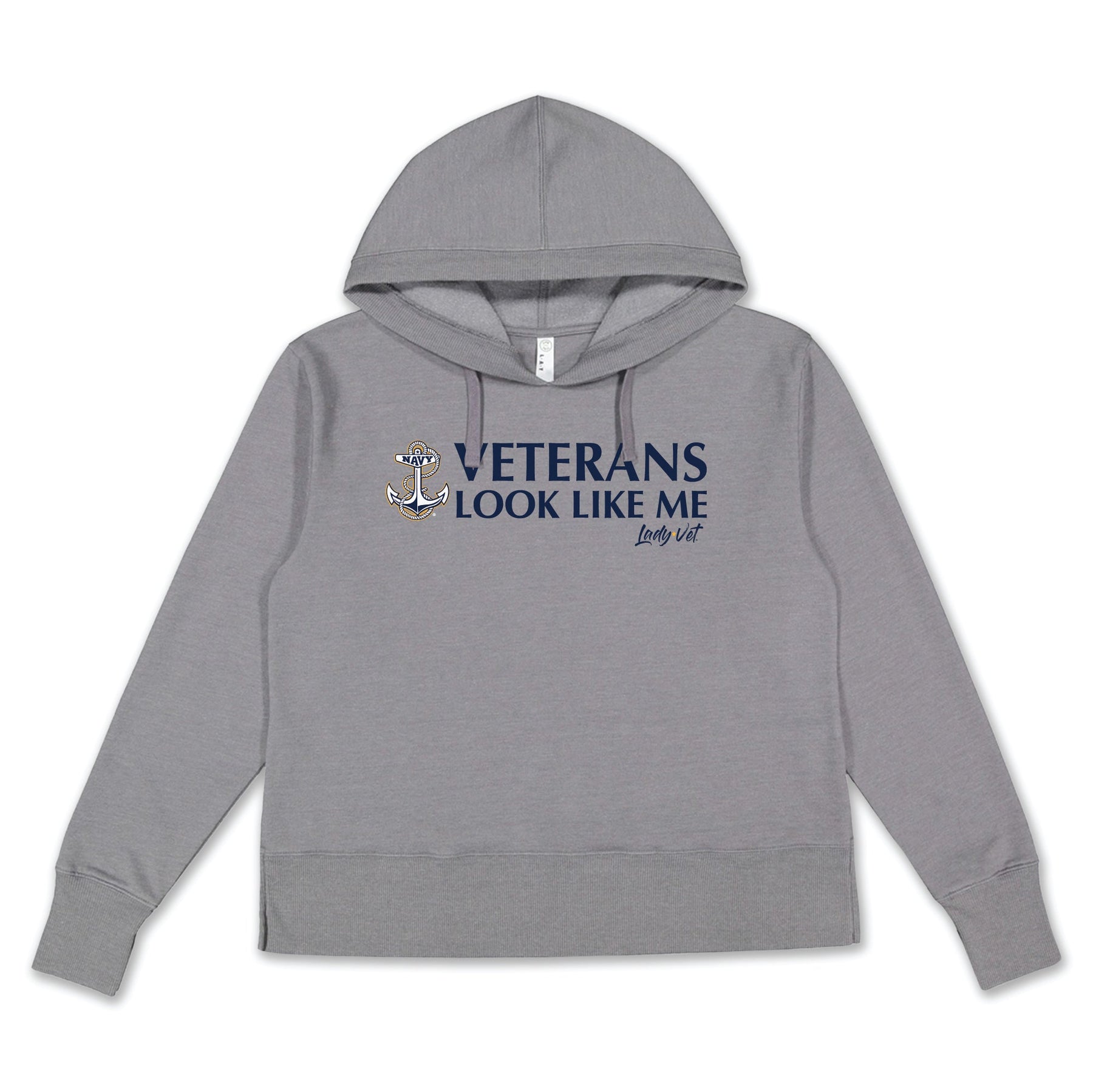 Lady Vet is a woman-owned, Veteran-owned brand created specifically to challenge public assumption of what a Veteran looks like. Show your support or wear it proudly with the Navy Vet Looks Like Me Ladies Hood!