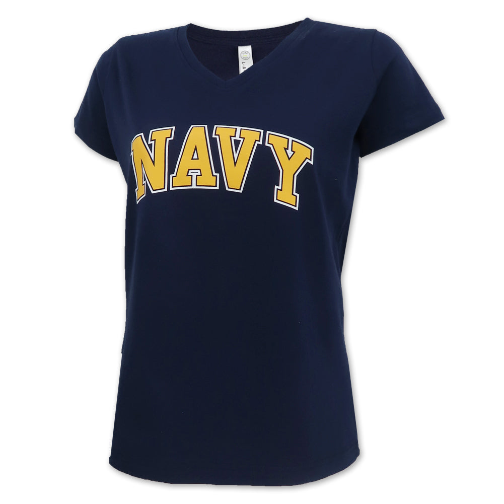 Give your everyday T-shirt collection an update with the Navy Ladies Arch V-neck T!