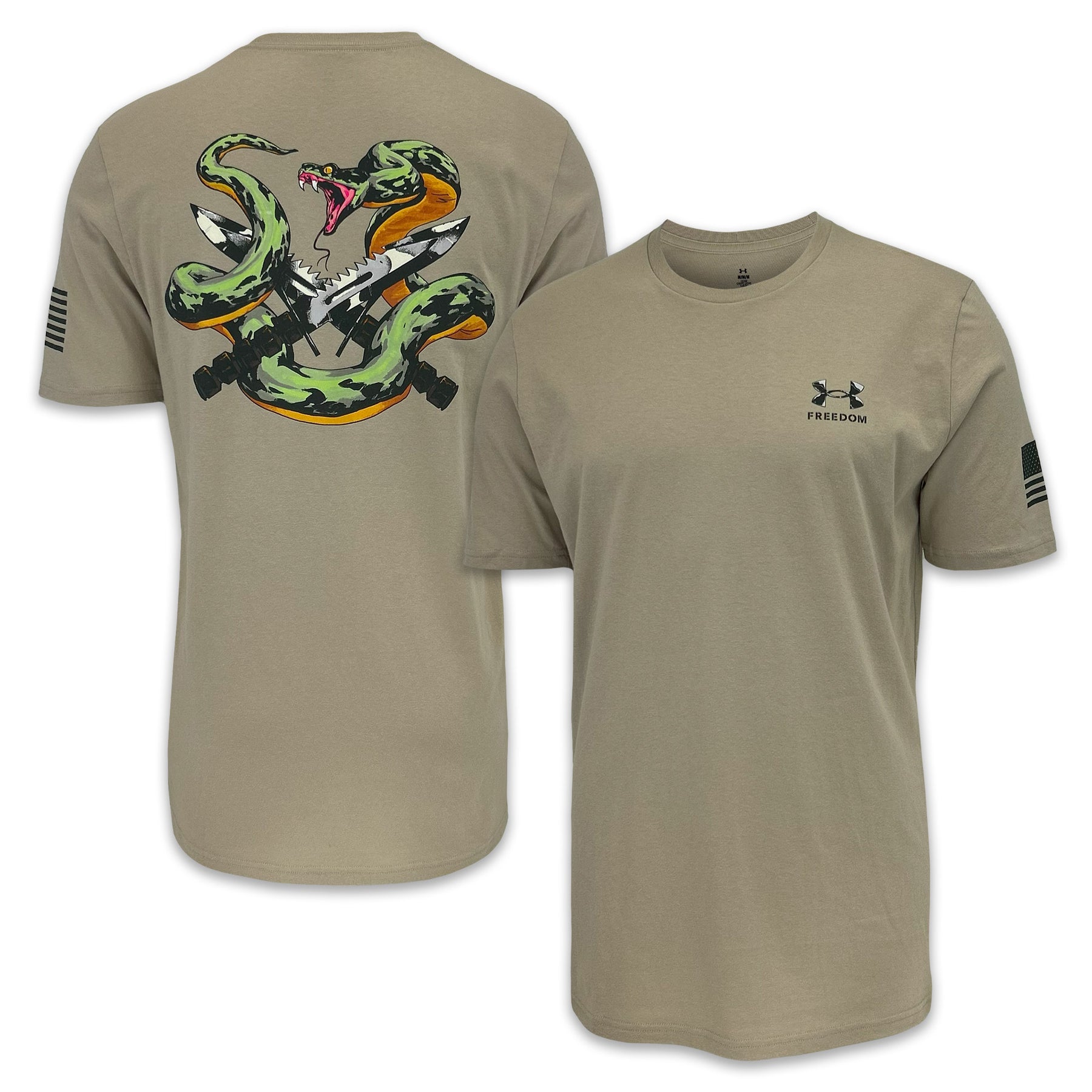Under Armour Freedom's goal is to support and inspire the brave men and women dedicated to protecting us, every day. Show your support for those in uniform with the Under Armour Freedom Snake Knife T-Shirt.