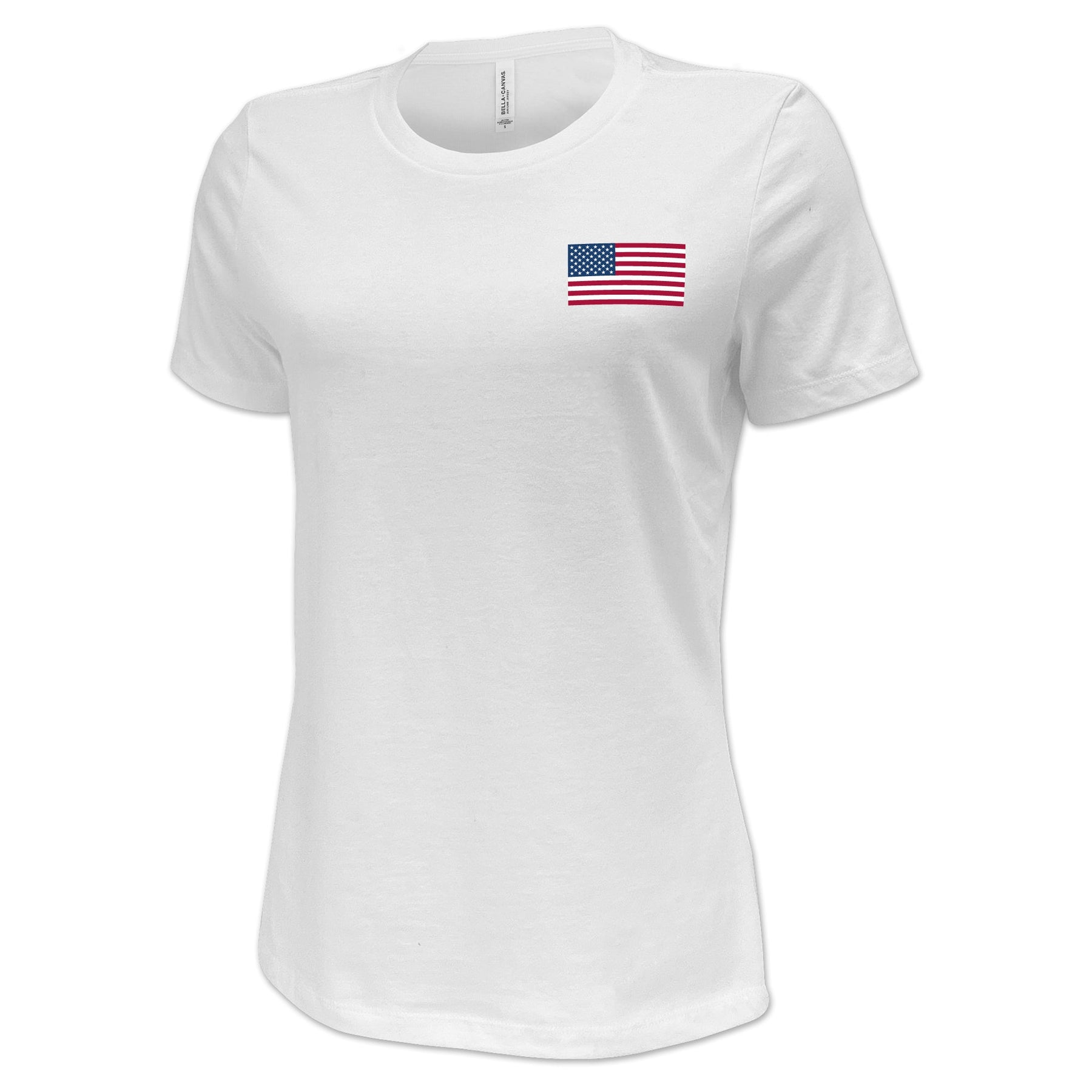 Show your pride in style with the USA Flag Ladies Left Chest T-Shirt — featuring a flattering fit, soft fabric, and a subtle American flag on the chest. Perfect for everyday wear with a patriotic touch.