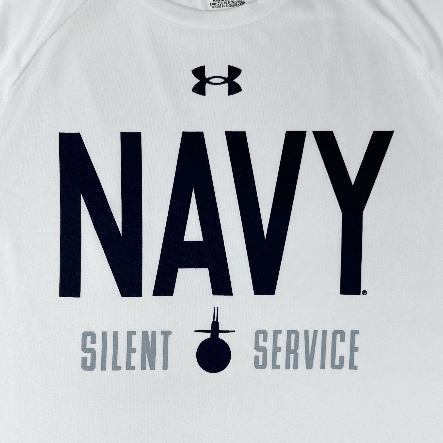 Introducing the Navy Under Armour Silent Service Tech Long Sleeve T-Shirt - a tribute to the Silent Service, the U.S. Navy's elite submarine force. Crafted with high-quality materials and tonal designs, this t-shirt represents the dedication and precision of those who serve beneath the waves. Go Navy!
