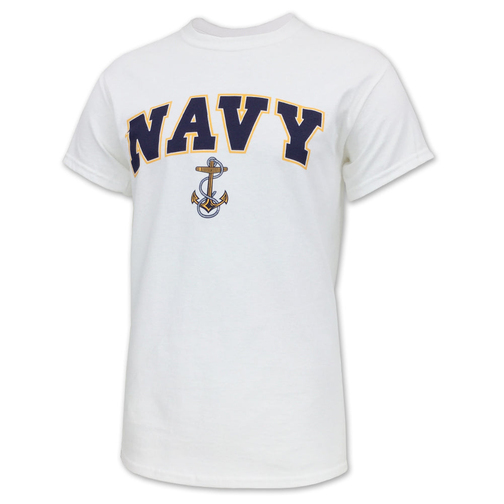 The Navy Arch Anchor T-shirt in White is an AFG exclusive Navy T-shirt. This clean and simple design will be an easy add to your Navy wardrobe!