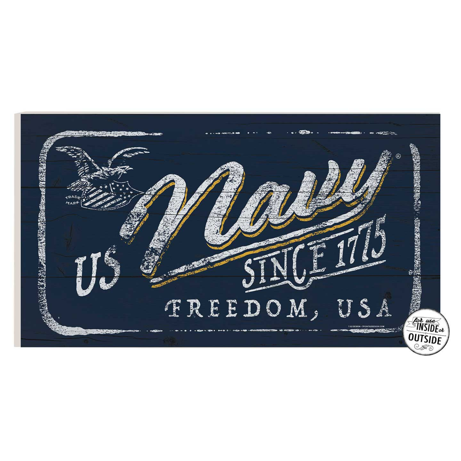 Display your American pride with this unique Navy indoor/outdoor sign! Each sign is printed on weather-resistant plastic with UV bonded inks, making them perfect for the outdoors.
