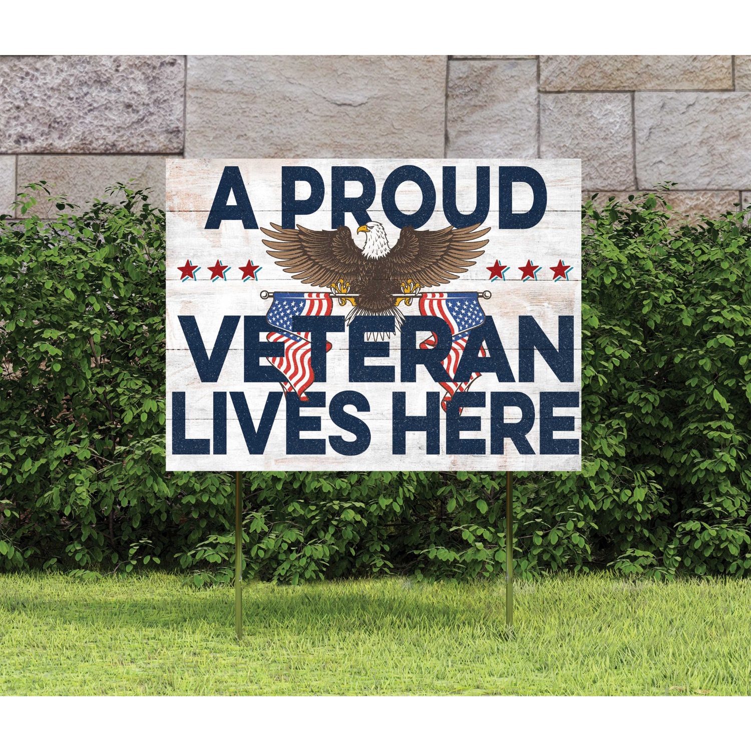 The Proud Veteran Family signs are a great way to communicate in a unique way! Use them in your lawn or in a window. Display your pride in the American spirit and your love for our United States Veterans. Printed with UV weather-resistant ink which won't fade over time.