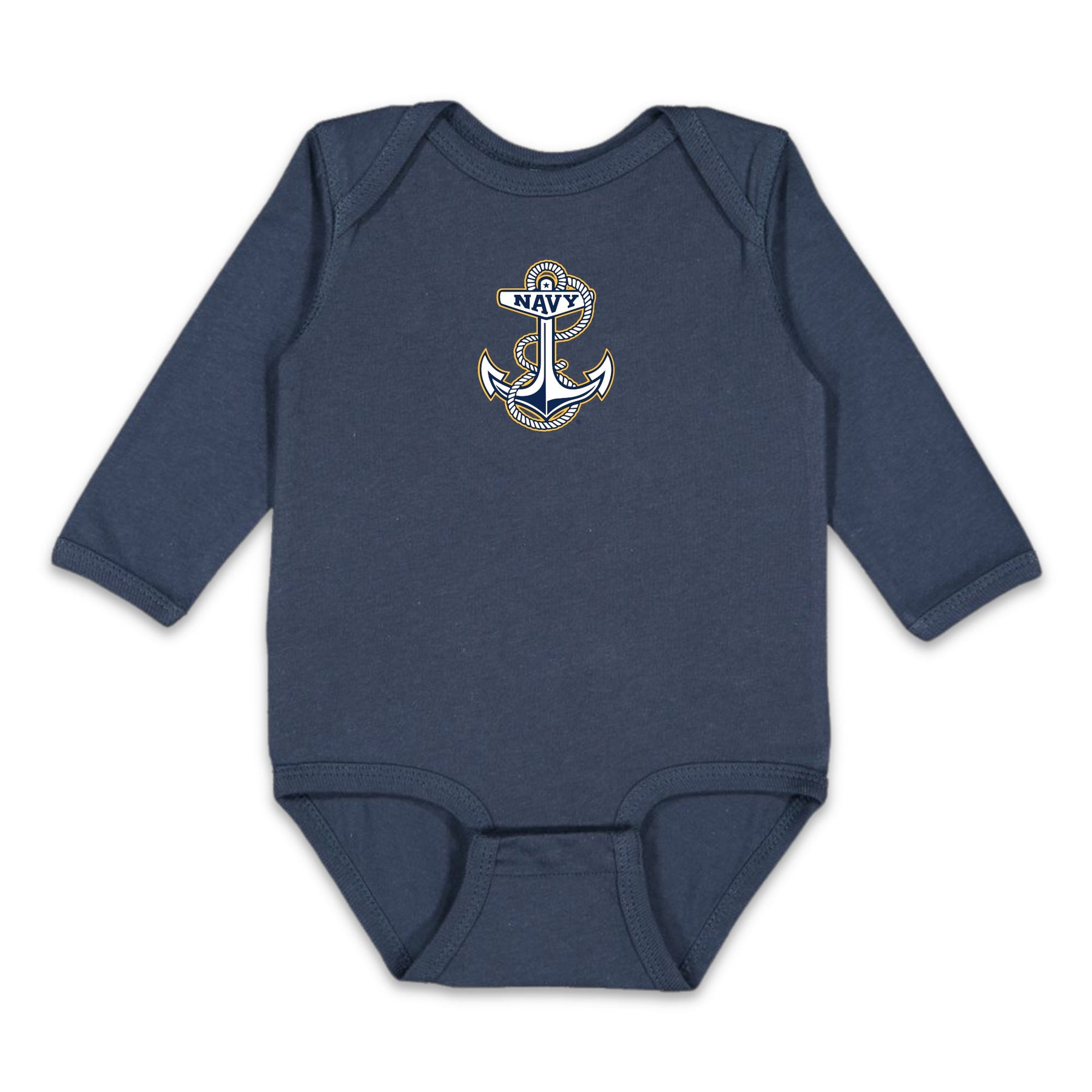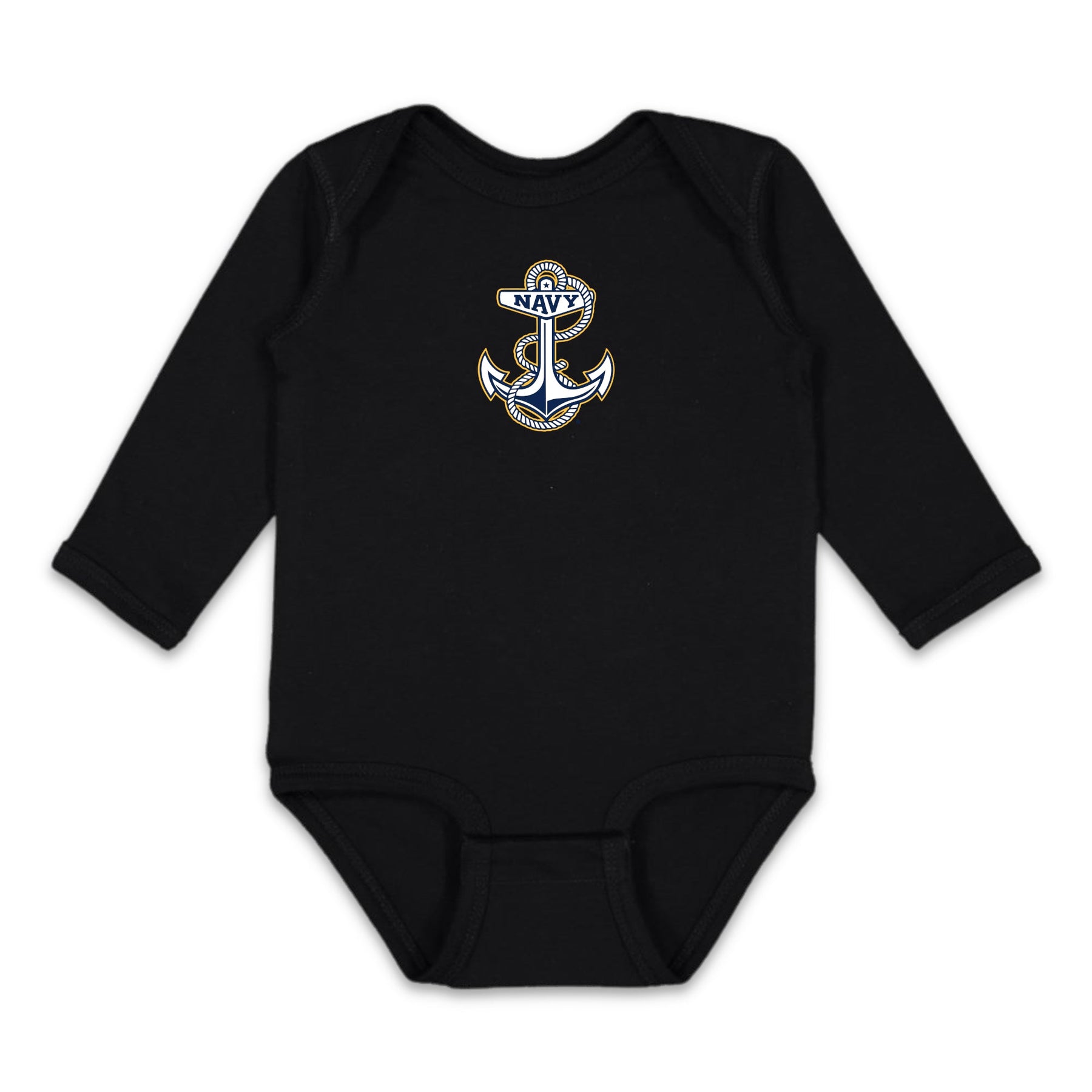 Start your little one's Navy pride early with the Navy Anchor Infant Long Sleeve Bodysuit!