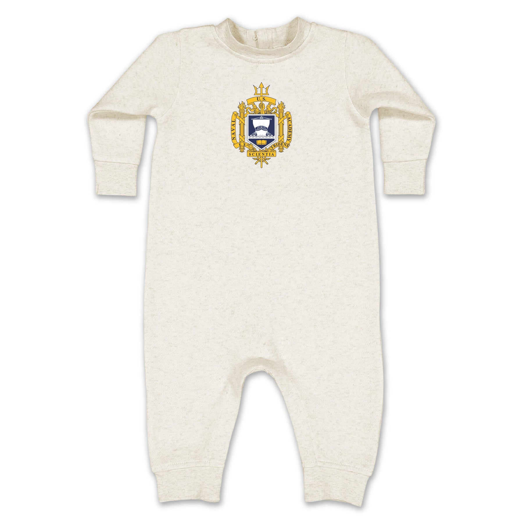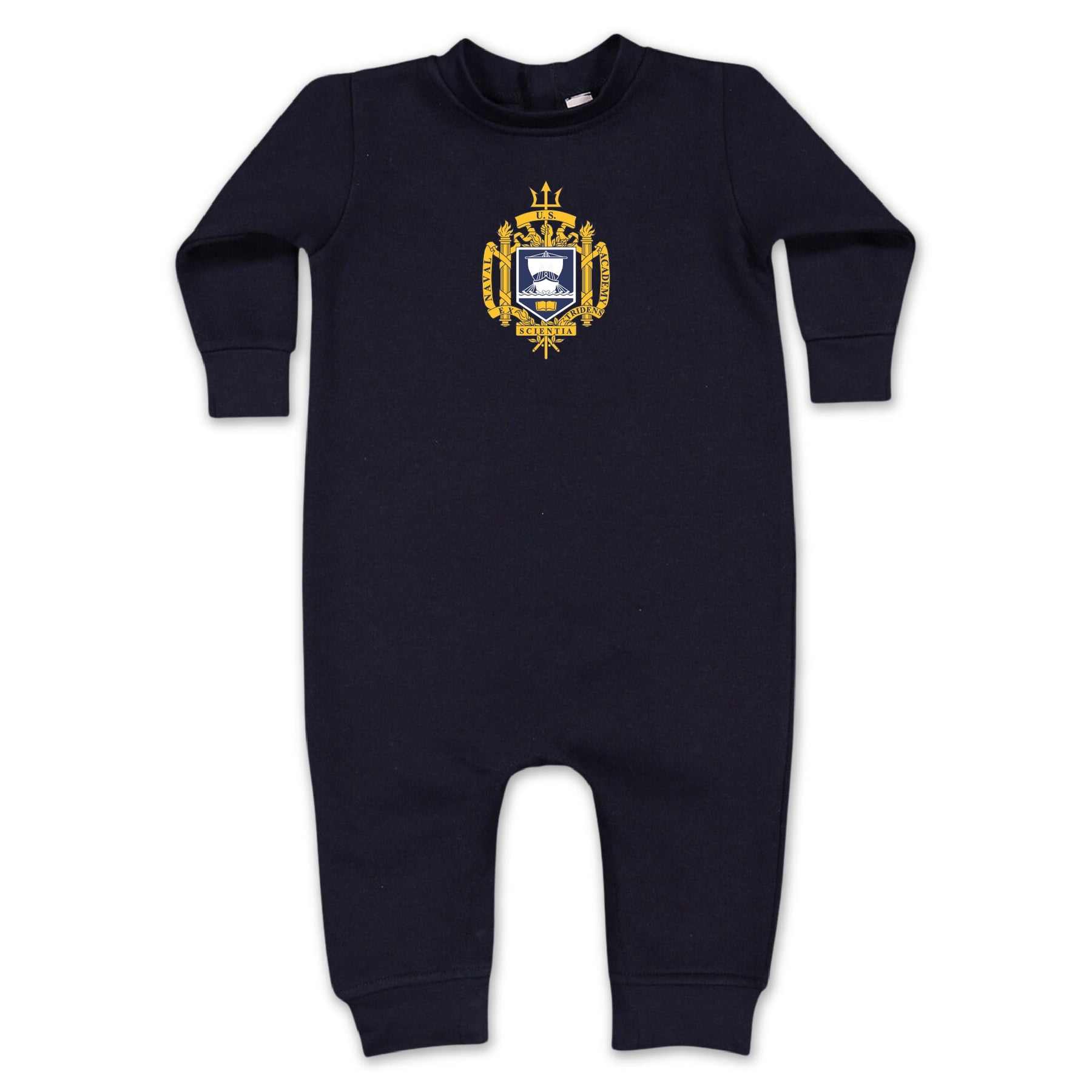 Start your little one's Naval Academy pride early with the Navy Crest Infant Fleece! Keep baby cozy while showing off your Navy pride in this soft fleece. Perfect for chilly days and game day excitement!