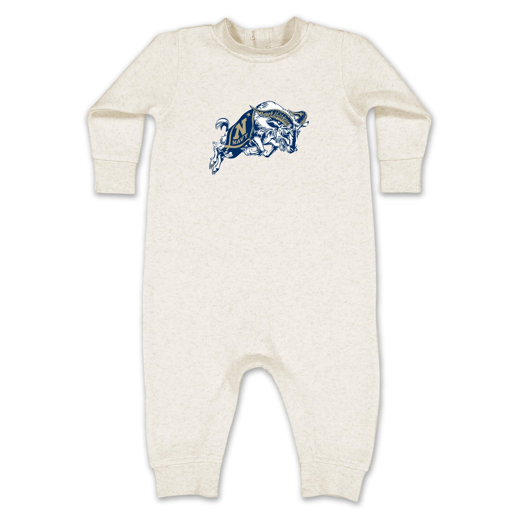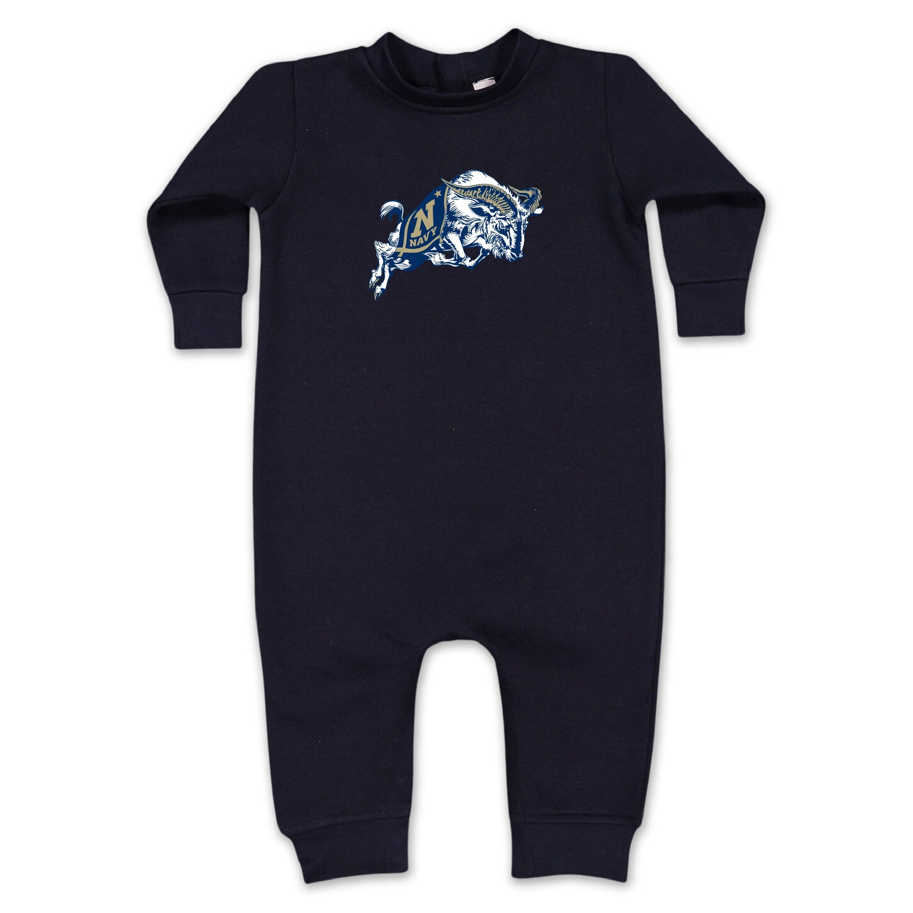 Start your little one's Naval Academy pride early with the Navy Goat Infant Fleece! Keep baby cozy while showing off your Navy pride in this soft fleece. Perfect for chilly days and game day excitement!