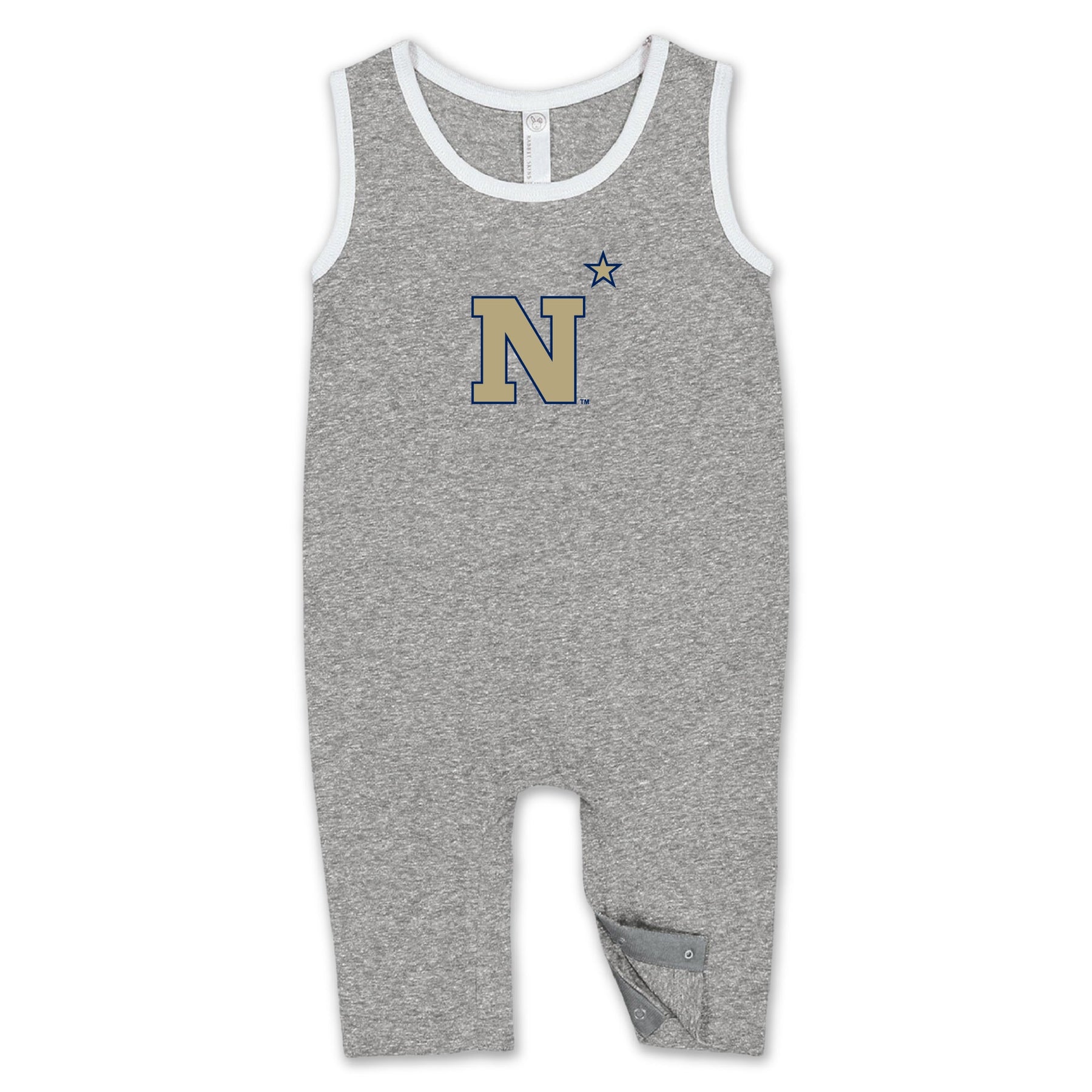 Start your little one's Naval Academy pride early with the USNA N* Infant Tank Romper! Perfect for your little tike to show off their family's pride for the US Naval Academy.