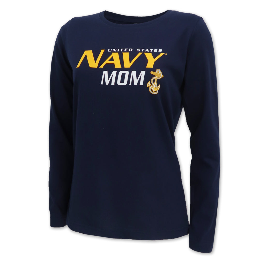 Proudly show your support for you son or daughter with the Ladies United States Navy Mom Long Sleeve T-Shirt!