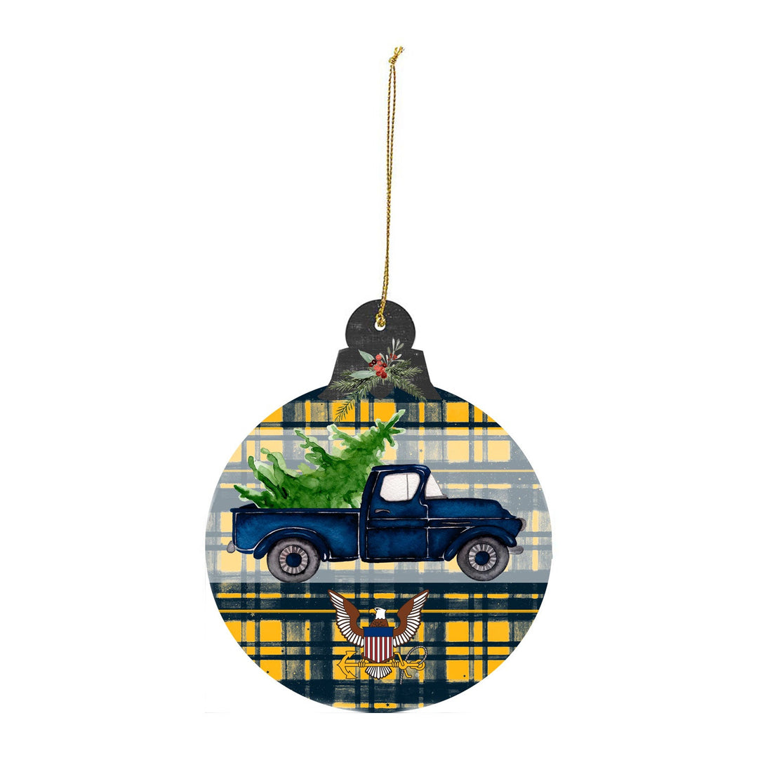Get ready to spruce up your holiday decor with this charming Navy Christmas ornament featuring a truck design. Made from high-quality wood, this ornament adds a touch of whimsy to any tree or display!