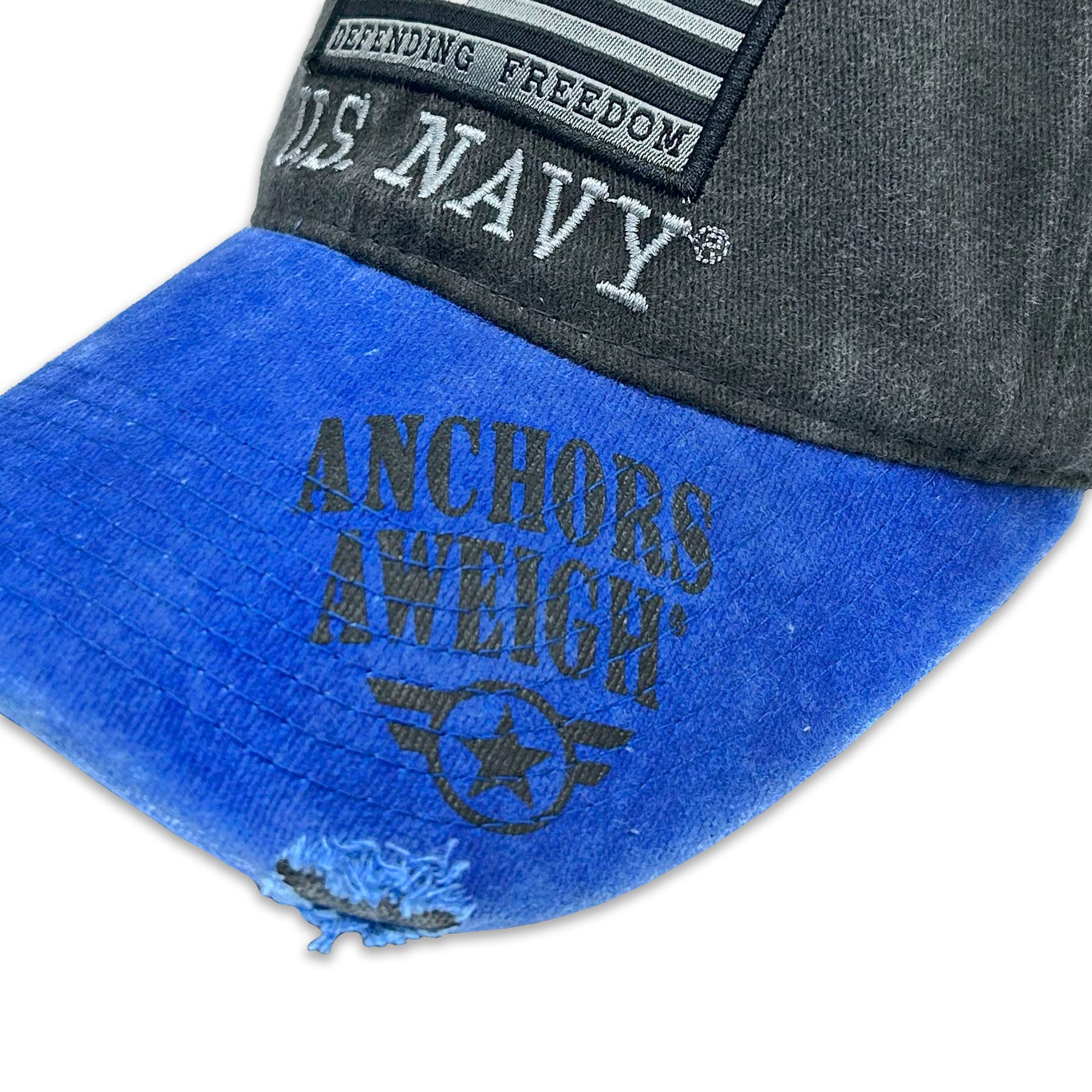 Get ready to defend freedom in style with our Navy Defending Freedom Xtreme Bent Hat! This distressed hat comes with a rubber band to keep your brim perfectly bent, adding an edgy touch to any outfit. Show off your rugged side while supporting our troops!
