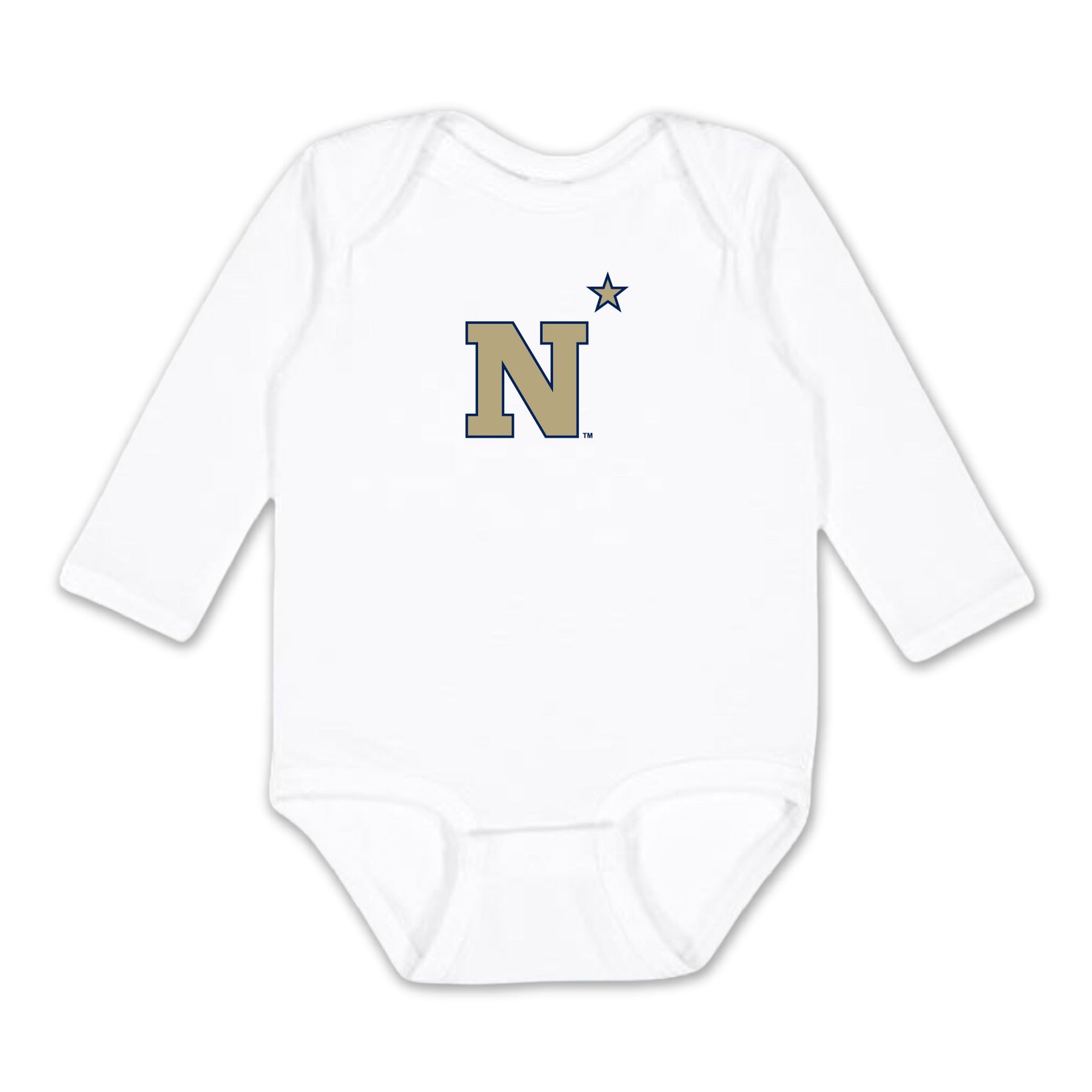 Start your little one's Naval Academy pride early with the USNA N* Infant Long Sleeve Bodysuit! Perfect for your little tike to show off their family's pride for the US Naval Academy.