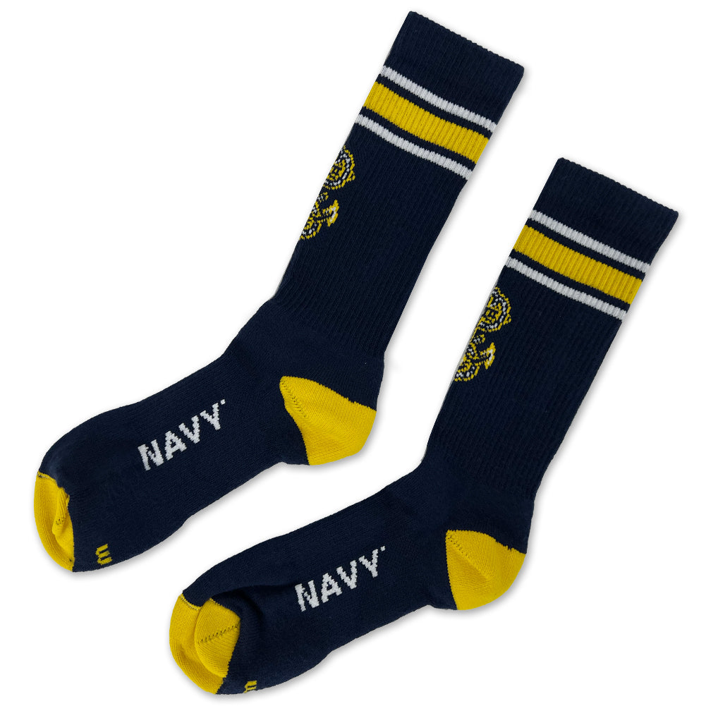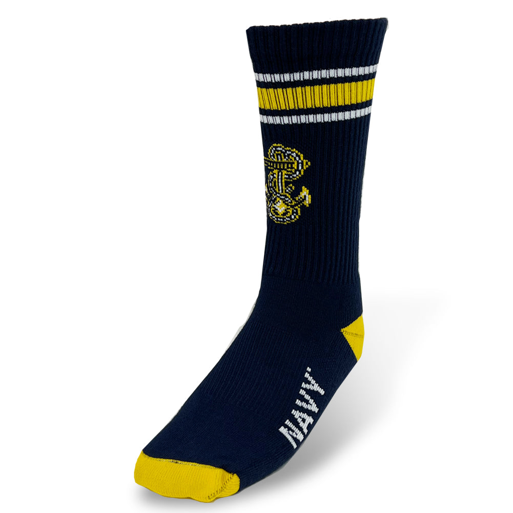 Complete your wardrobe with these great Navy Stripe Anchor Crew Socks