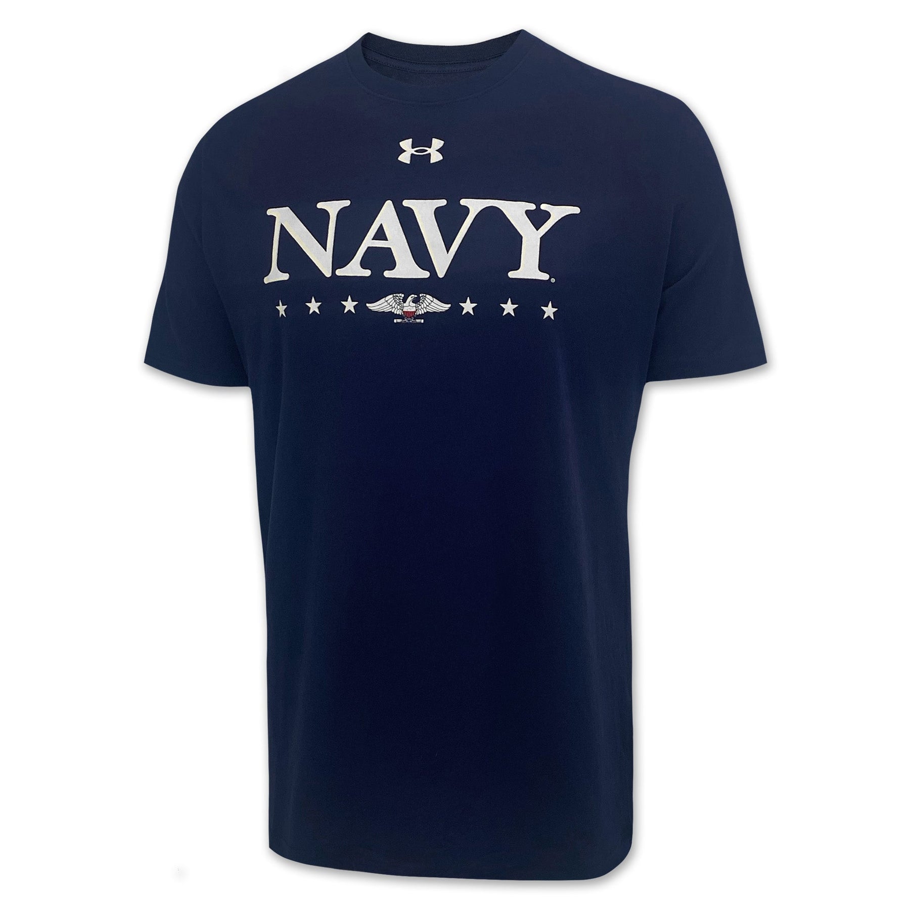 Part of the exclusive 2025 Rivalry Collection, this Navy Under Armour Eagle Cotton T-Shirt blends classic comfort with standout Navy spirit. Crafted from soft cotton and featuring bold eagle graphics that honor Navy tradition, it’s a versatile tee that works just as well in the stands on game day as it does in everyday wear. A special release from the Rivalry Collection, it’s a timeless way to celebrate your Navy pride.
