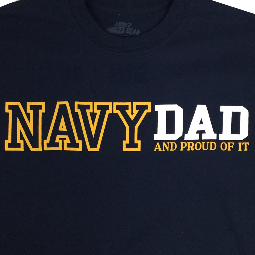 The Proud Navy Dad T-shirt is a unique AFG design printed on 100% preshrunk cotton. If you’re a Navy dad or know one, it's the perfect way to show your pride! Also available on a cozy crewneck sweatshirt.