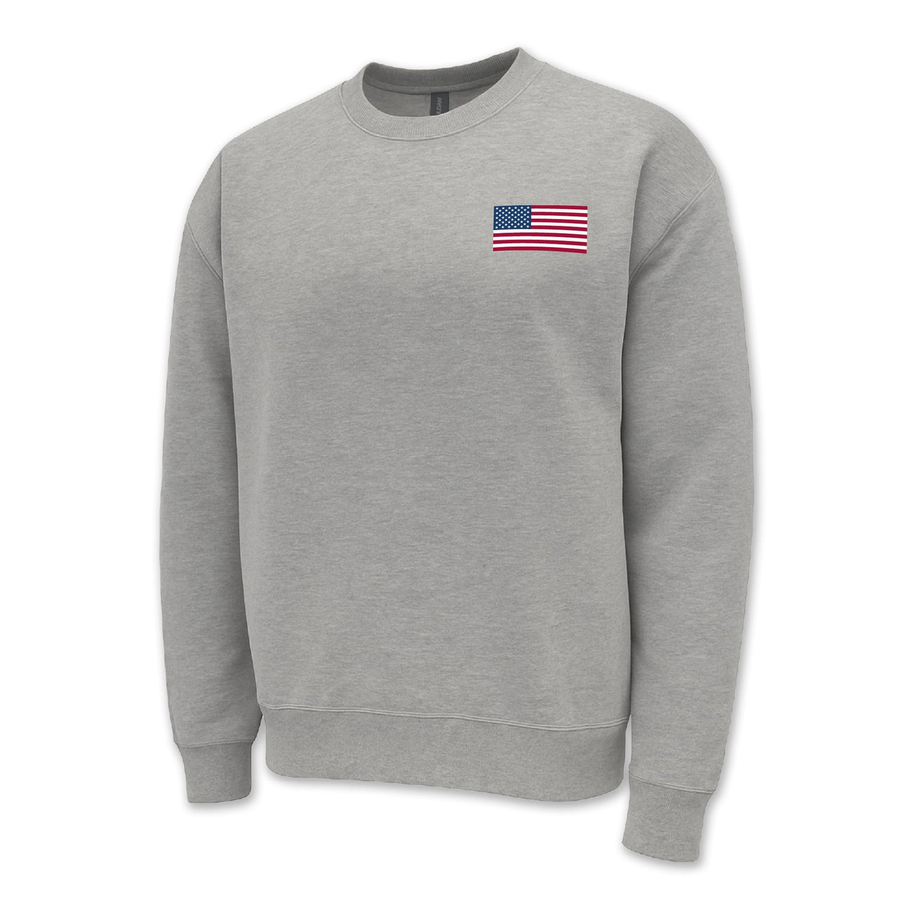 Layer up with pride in the USA Flag Left Chest Crewneck — made from soft, midweight fabric and finished with a clean American flag graphic on the chest. Perfect for showing your patriotism in classic, everyday comfort.